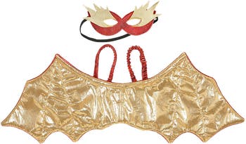 Red Dragon Wings & Mask Set Ignite your imagination and transform into a fierce red dragon with this striking Wings & Mask Set! Whether you're flying through enchanted skies or guarding your mythical treasure, this set brings fiery fun to any costume collection. Crafted with bold red hues and dynamic details, the lightweight wings flap with movement, while the matching mask adds a fearsome touch—perfect for Halloween, dress-up, or everyday adventures. Specifications Color: Red Includes: Dragon wings and matching mask Recommended Age: 4–8 years Material: 100% polyester (woven and knitted) Size (inches): Wingspan: approx. 30 in Mask width: approx. 8.5 in Weight: 0.4 lbs Features: Comfortable elastic straps for easy wear Lightweight, breathable fabric Bold design with flame-like detailing
