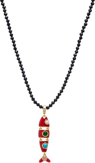 Layer your way to style perfection with the Red Enamel Fish Charm Beaded Necklace by Adina Eden, a gorgeous Necklace. Add texture and tone with this versatile necklace for women, offered in Red. No matter the plan or pace, this piece brings a thoughtful finish to your look, no matter how relaxed or refined your outfit is. Pair this gold plated necklace with accents from our Chain Necklaces collection for a timeless, layered effect. A timeless touch you'll find new ways to style every season.