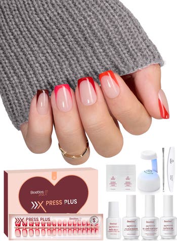 X Press Plus Red French Tip Nails - Crimson French | 5 Colors Christmas Press On Nails Short Square | 160Pcs 16 Sizes All-in-One Kit With Nail Glue,Remover,Builder Top Coat,Nail Lamp