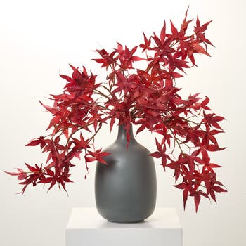 Red Japanese Maple Leaf Fall Tabletop Arrangement in Tall Matte Grey Jug Vase