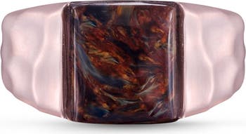 The Red Pietersite Textured Sterling Silver Signet Ring showcases a bold and rugged design. Created for the modern man who values striking aesthetics and unique texture.