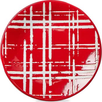 Red Plaid Ceramic Appetizer Plate Dishwasher Safe Dining