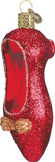 Tap your heels three times and bring a little magic to your holiday décor with this hand-painted glass slipper ornament.
