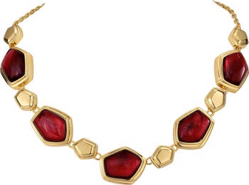 Textured linked necklace inspired by Tudor velvet with dimensional glass contours for an opulent statement look.
