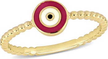 This Red and White Enamel Evil Eye Ring is a captivating piece crafted in 14k Yellow Gold. The intricate design of the evil eye, featuring red and white enamel, adds a pop of color and symbolism to your style. This ring is not only a beautiful accessory but also a talisman believed to protect against negative energy, making it a meaningful addition to your jewelry collection.