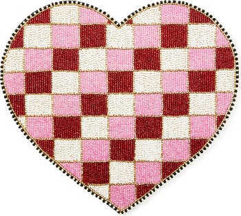 Add a touch of romance to your dining table with this heart-shaped placemat made from colorful beads in a check pattern.