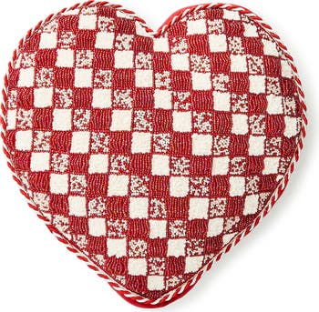 Add a touch of romance to your living space with this heart-shaped pillow made from soft chenille and colorful beads designed in a check pattern.