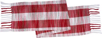 - Showcases a beautiful mélange weave of red and white tones with decorative fringe ends that bring a handcrafted feel to your home. The design blends traditional and modern Christmas aesthetics, creating a festive accent that complements any décor.