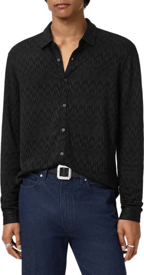 A subtle overdyed chevron pattern emerges from the soft jacquard-knit backdrop of this shirt that merges the polish of a button-up and the comfort of your favorite weekend styles.