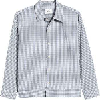 A lightweight layering overshirt is softly gridded and cut from breathable stretch-kissed cotton.