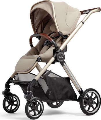 Why parents will love it: The revolutionary one-seat solution converts into four different modes, allowing your child to ride reclined, rear-facing, forward-facing or converted to a travel system with car-seat adapters (sold separately). Goldtone accents on the wheels appeal to your stylish side, while the large puncture-proof tires and all-wheel suspension handle more rugged terrain with ease. A state-of-the-art no-rethread harness system and Genius™ buckle provide added protection and peace of mind. A large, easy-to-access basket under the seat holds up to 22 pounds and the seat fabric is made with yarn from recycled plastic bottles.