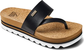 Elevate your stride with this breezy thong-post sandal balanced on a cushy cork footbed and springy EVA platform outfitted with sturdy rubber lugs.