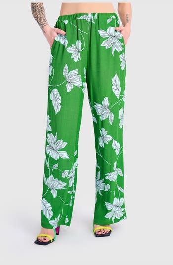 These high-rise straight leg pants are cut in a fluid viscose woven with a soft crepe hand. The loose fit falls cleanly from hip to hem, creating an elongated line through the full length. An elastic waistband ensures pull-on ease, while side pockets add everyday function. A lightweight option that brings relaxed polish to warm-weather dressing.