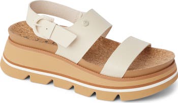A cushy, contoured cork footbed serves all-day comfort in this lightweight slingback slide sandal grounded on a chunky platform with deep flex grooves.