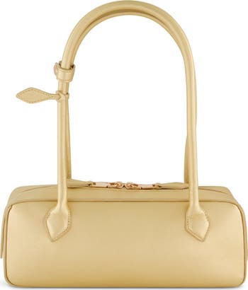 Shine in style with this gold structured handbag, perfect for adding a touch of glam to your everyday look. Its elongated top handles let you sling it over your shoulder effortlessly, while the longer width and shorter height keep its shape sleek and modern. Finished with gold hardware and a secure top zip closure, it’s a statement piece that’s both practical and polished.