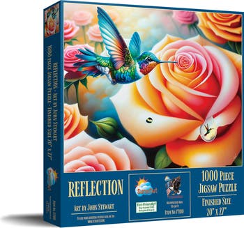 Unleash your creativity with the Reflection 1000 Piece Jigsaw Puzzle by SunsOut, a remarkable escape into a world of serene beauty crafted from breathtaking artwork by John Stewart. This engaging puzzle, ideal for adults, features vibrant hummingbirds and vibrant roses, encouraging you to explore the delicate interplay of color and nature while constructing a masterpiece measuring 20” x 27”. Crafted with precision, each interlocking piece ensures a seamless picture and a frustration-free experience, made from high-quality puzzle board for durability that withstands multiple assemblies. Feel confident in your choice, as SunsOut uses soy-based inks and high quality materials. Each puzzle arrives in a stunning full-color display box, making it perfect for gifting, whether for family or friends. Choose the Reflection 1000 Piece Jigsaw Puzzle to enrich everyday life with art, joy, and countless hours of relaxation and discovery.