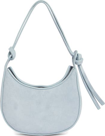 A crescent silhouette and knotted shoulder strap brings visual intrigue to a leather shoulder bag that's sure to complement your trendsetting looks.