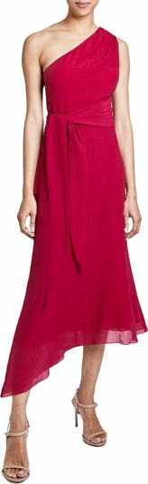 - One-Shoulder Sleeveless Faux Wrap Dress in Crinkle Georgette
