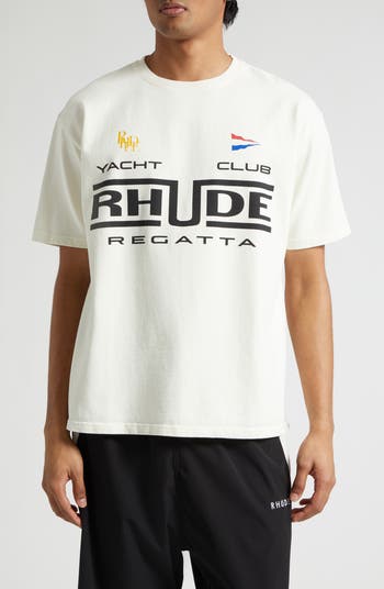Set sail for comfort in this boxy cotton T-shirt branded with custom graphics that identify you as a member of the yacht club.