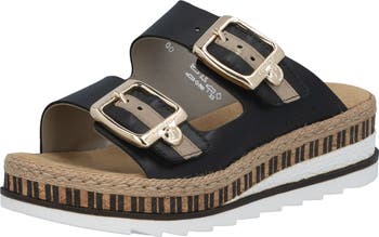 This slide sandal with a walkable wedge heel is designed with flexibility and shock absorption for daylong comfort.