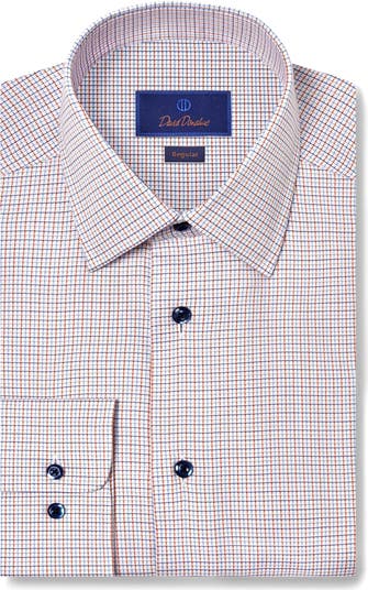Subtly textured cotton dobby patterned in a smart check brings elevated detailing to a dress shirt styled with a simple French placket for a smart, streamlined look. Crafted with contrast buttons and a midweight feel, it makes a versatile, all-season addition to your semiformal wardrobe.