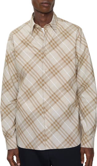 A long-sleeved shirt made from cotton woven in Italy with the Burberry Check. The style is cut to a regular fit.||Button closure|Point collar|Single-button cuffs|Curved hem