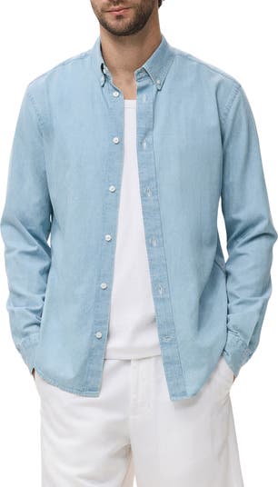 Regular Fit Cotton & Linen Denim Button-Down Shirt