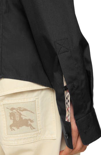 A long-sleeved shirt made from cotton poplin, lined with Burberry Check at the placket and cuffs in signature archive beige. The style is tailored to a regular fit and embroidered with a tonal Equestrian Knight Design.