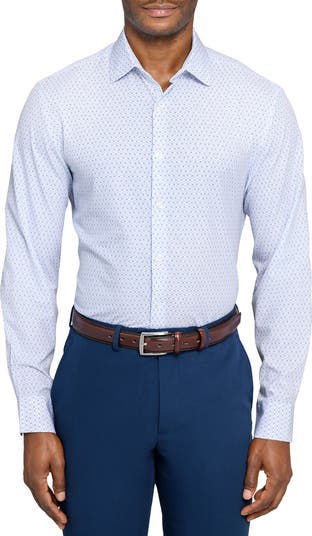 W.R.K Regular Fit Duo Geo Print Performance Dress Shirt, Alternate, color, White/ Blue