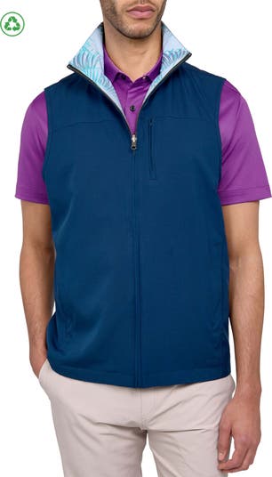 CONSTRUCT Regular Fit Leaf Print Recycled Performance Reversible Vest, Alternate, color, Navy