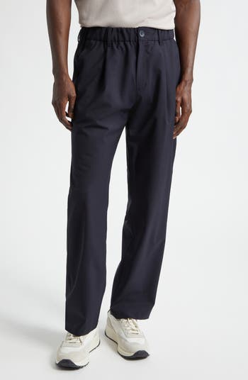 Clean through the leg with crisp pleats at the front, these pants read refined from every angle. Wool-enriched fabric with added stretch brings structure, the smooth lining adds comfort and the elastic waist makes them quietly wearable all day.