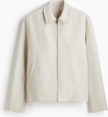 Jacket in an airy weave made from a linen and viscose blend with a collar, zip down the front and diagonal welt pockets with a concealed press-stud. Long sleeves with a press-stud at the cuffs and a visible seam down the back. Regular fit for comfortable wear and a classic silhouette. Unlined.