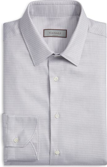 A muted pattern adds subtle style points to an Italian-made dress shirt cut from premium cotton.