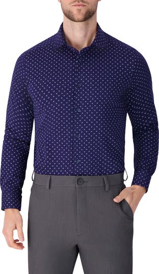 Regular Fit Navy Geometric Print Knit Cotton Dress Shirt