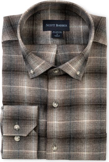Regular Fit Ombré Plaid Cotton Twill Button-Down Shirt