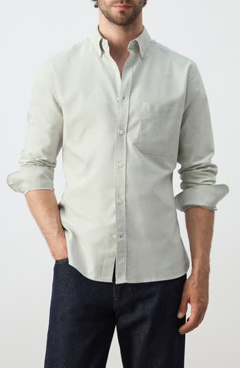 Move through the office or your next event in style and comfort with this cotton-oxford shirt sporting a regular fit and a versatile solid hue.