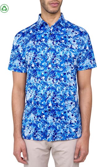 Regular Fit Palm Splatter Print Recycled Performance Golf Button-Down Shirt