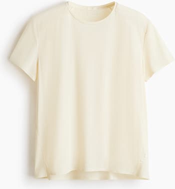 Running T-shirt in functional fabric made with DryMove™, which helps pull moisture away from your skin, keeping you comfortably dry while moving. Regular fit with a round neckline, forward-facing side seams, and ventilating holes with a reflective print at the upper back. Straight-cut hem with a slit at each side.