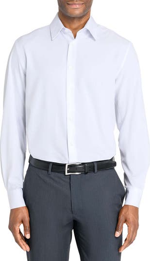 Moisture-wicking fabric with four-way stretch keeps you comfortable all day in a travel-friendly dress shirt designed to resist odors and wrinkles.