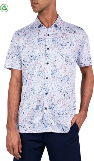 Regular Fit Splatter Print Recycled Performance Golf Button-Down Shirt
