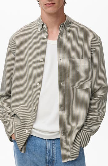 Move through the office or your next event in style and comfort in this sleekly striped button-down shirt cut for a regular fit.