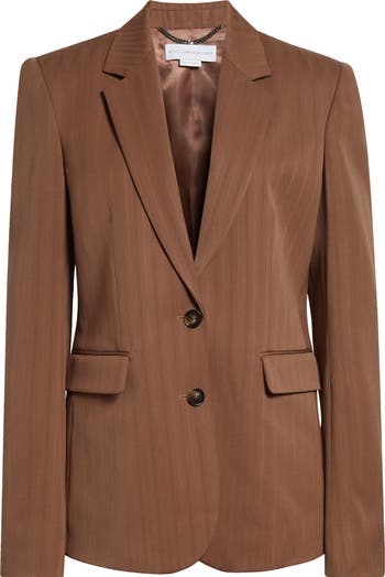 McCartney’s Savile Row pedigree shows in the way this jacket holds its shape, crisp, clean and beautifully balanced. Tailored in wool with tonal stripes, it brings texture and nuance to a fitted silhouette that flatters without feeling fussy.