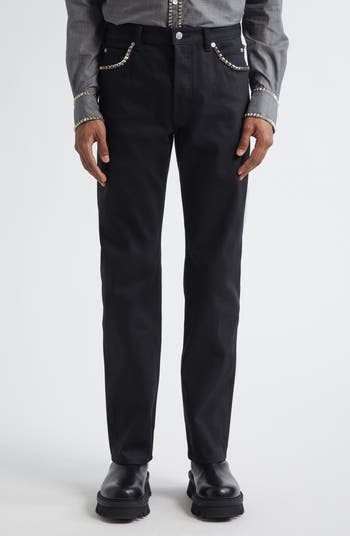 Drawing from the spring ’25 Plainsong collection’s blend of romance and rebellion, these regular-fit jeans channel classic style with a defiant twist. Crafted from sturdy rigid denim, they’re finished with high-shine studs bordering the front pockets and extending across the back for a fierce, unmistakable finish.