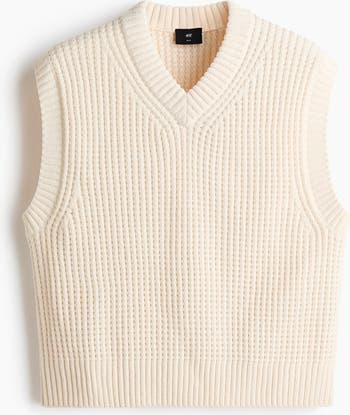 Sweater vest in a soft knit featuring a ribbed V-neck and a ribbed trim around the armholes and hem. Regular fit for comfortable wear and a classic silhouette.