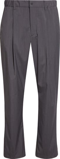 Stretch-enhanced synthetic fibers are combined with a touch of wool to achieve a technical feel on these modern pleated pants constructed with a comfortable elastic/drawstring waist that allows seamless movement.