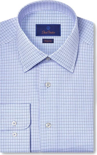 Subtly textured cotton dobby patterned in a distinctive check brings elevated detailing to a dress shirt designed with a simple French placket for a smart, streamlined look. Crafted with pale buttons and a midweight feel, it makes a versatile, all-season addition to your semiformal wardrobe.