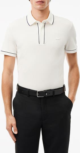 Slim tipping frames the collar, cuffs and placket of a polo made of stretch-enhanced cotton piqué and styled to keep you all-activity smart and comfortable.