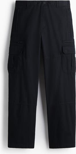 Cargo trousers in cotton twill featuring smocked elastication at the waist with a concealed drawstring and a zip fly with press-stud. Zipped side pockets and zipped welt leg pockets, finished with flap leg pockets and flap back pockets, all with press-studs. Regular fit for comfortable wear and a classic silhouette.