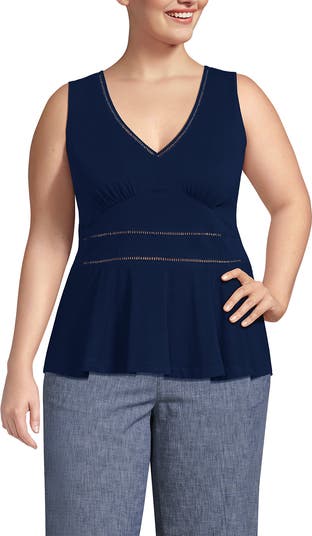 Regular Size Sleeveless LWCM Lattice Peplum VNeck Top