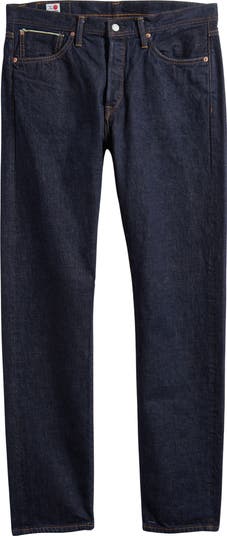 Rooted in vintage-inspired craftsmanship, these first-day-blue jeans offer a clean, classic fit that sits at the hips and stays comfortably straight down the legs. The nonstretch cotton denim brings the texture and durability of meticulous craftsmanship to your everyday looks.